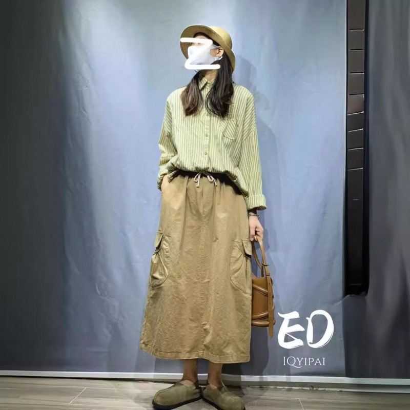Ed9471韓国輸入水洗い綿のハーフスカートの後でフォークを開けて腰の半身のスカートの2024の新型の文芸のスカートの夏を緩めます。