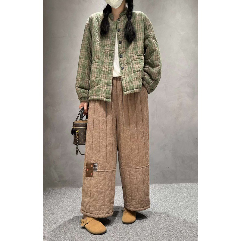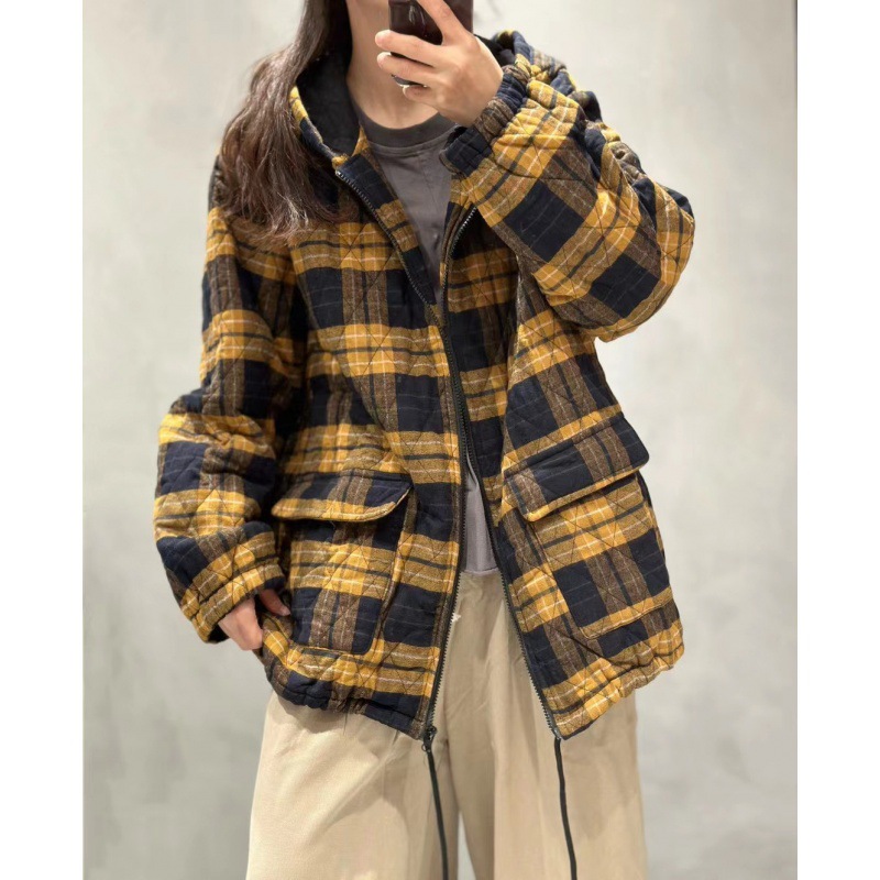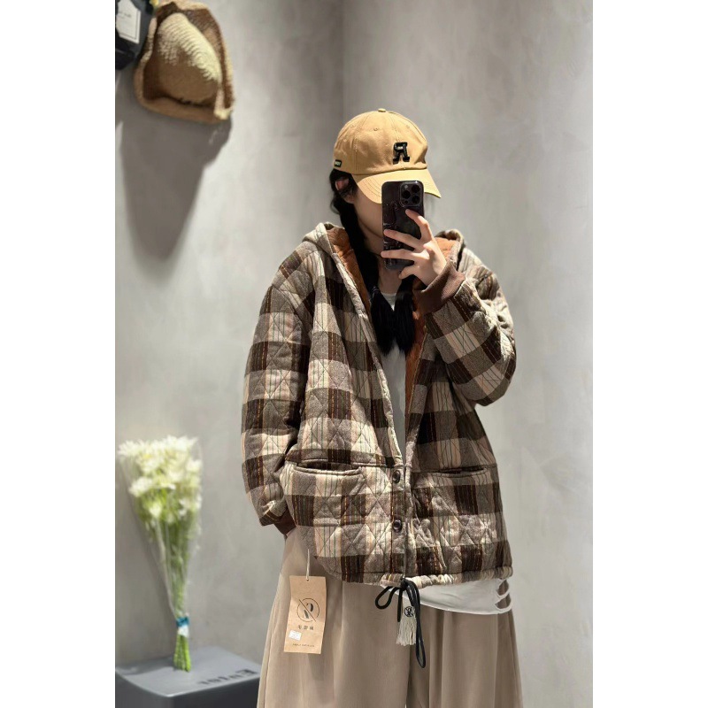 Cz23080秋冬格子連帽ゆるいカジュアル綿服コート2024新型厚手保温上着