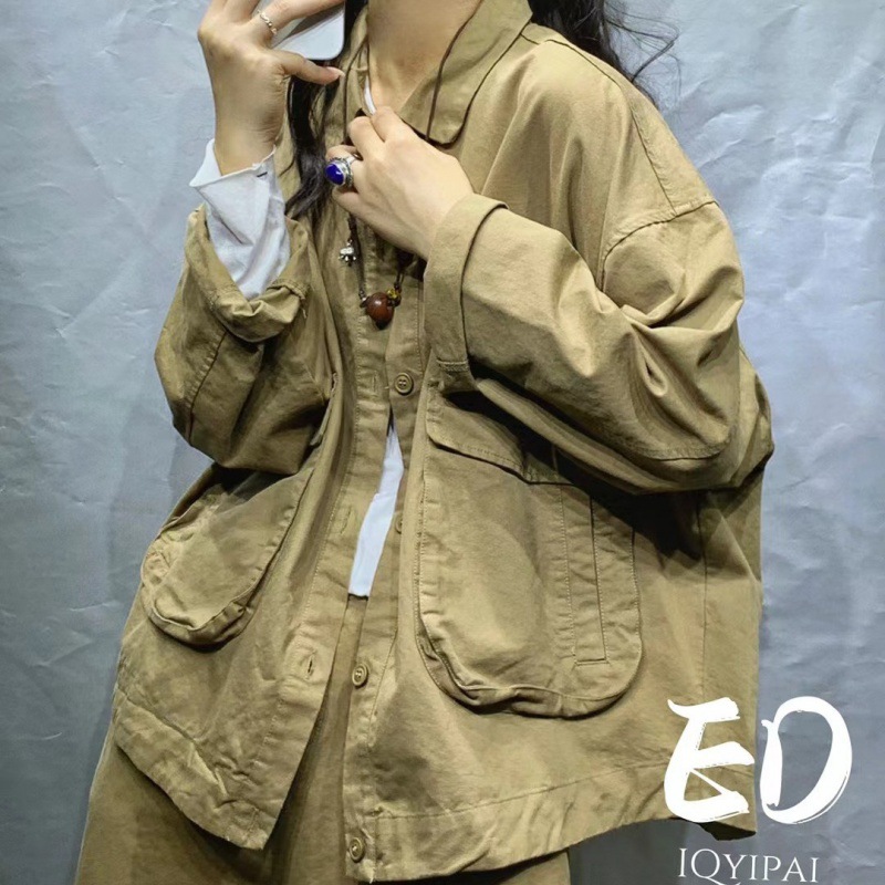 Ed7141韓国洗水綿純色ゆるいシャツ襟コート女性2024春の新商品百合カジュアルコート