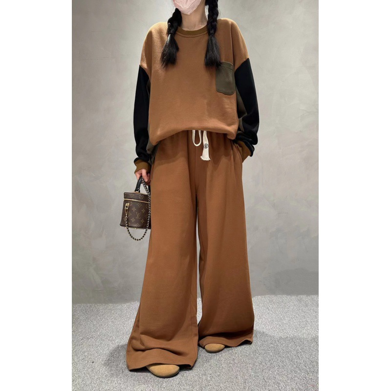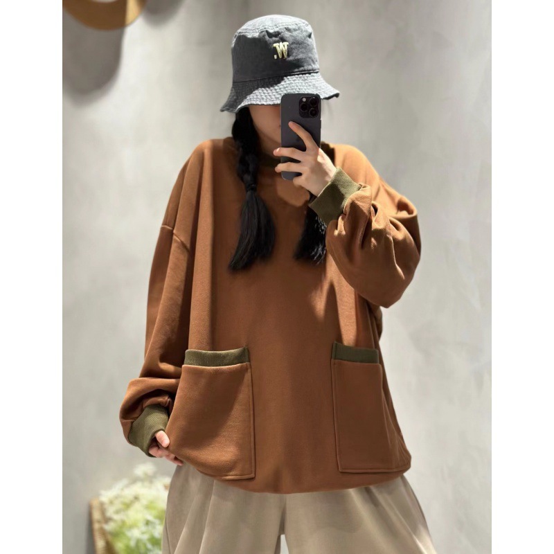Cz9929秋冬丸首綿長袖ステッチ衛衣2024春新作ゆったりカジュアル上着文芸婦人服