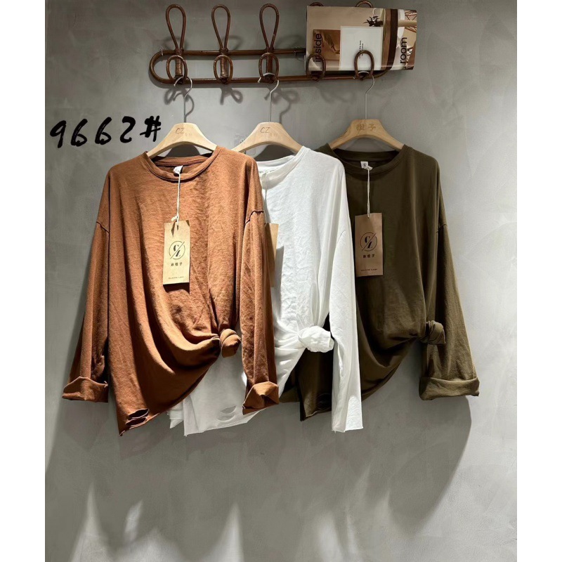 Cz9662早秋の韓国版丸首カジュアル長袖tシャツ女性2024新型百合頭上着シャツファッション