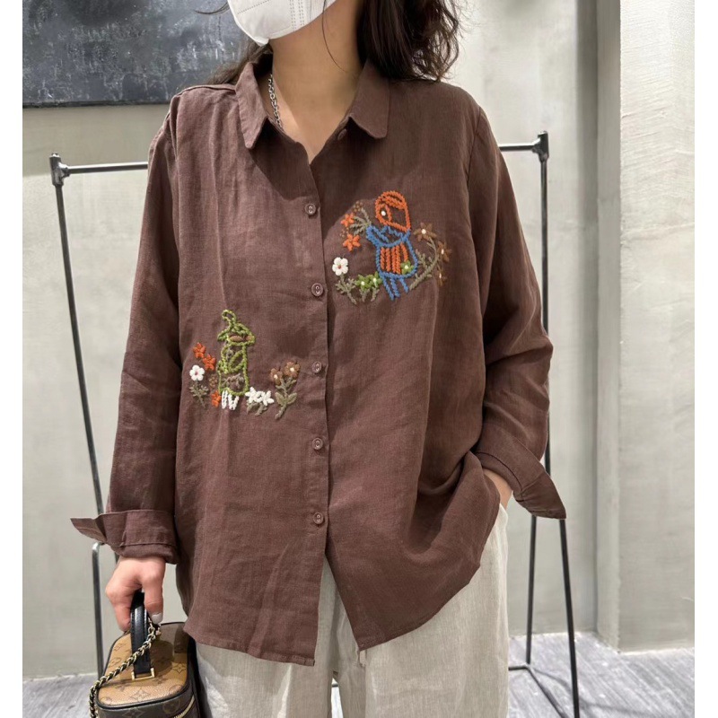 Cz0230亜麻刺繍シャツ2024新型レトロカジュアルカーディガンコート一列ボタンゆったり上着女装