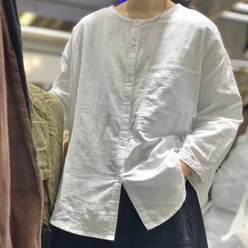 Ed3801純色綿麻亜麻シャツ2024夏のゆるいシャツカジュアル長袖上着女装