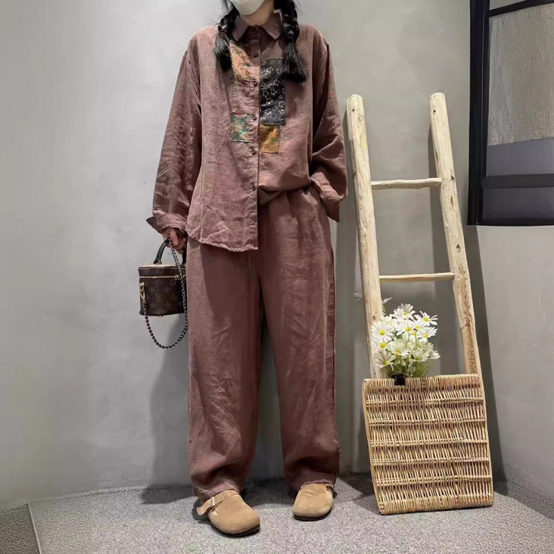 Cz25157文芸レトロ亜麻はゆったりとした長袖のシャツをつなぎ合わせます。