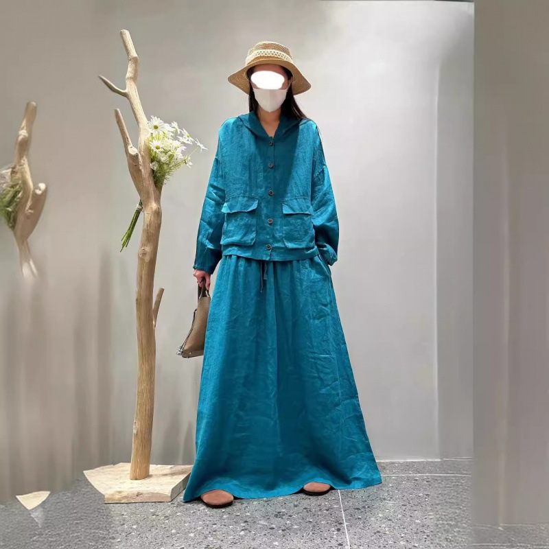 Cz99861 9375純色亜麻連帽カジュアルセット2024春新作文芸シャツハーフスカート