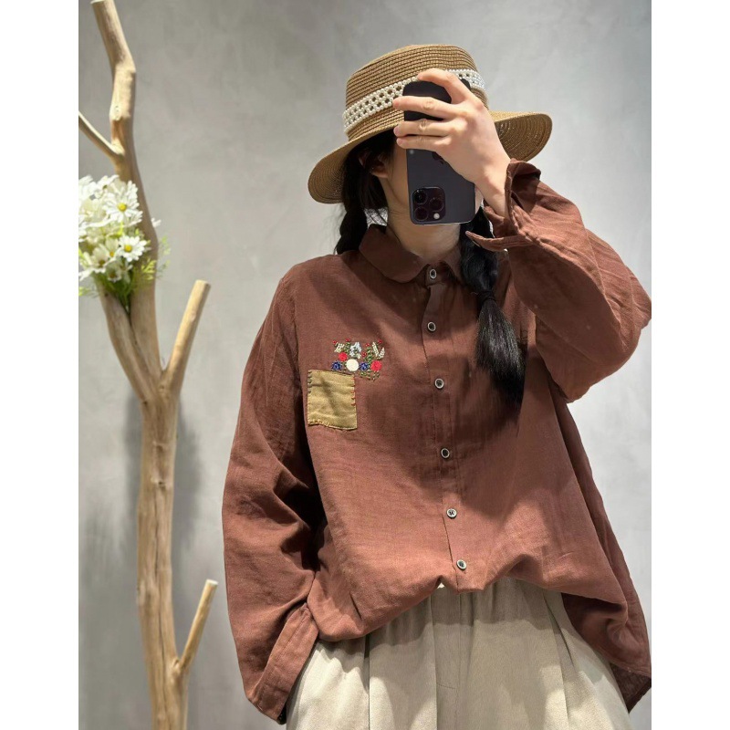 Cz25157文芸レトロ亜麻はゆったりとした長袖のシャツをつなぎ合わせます。