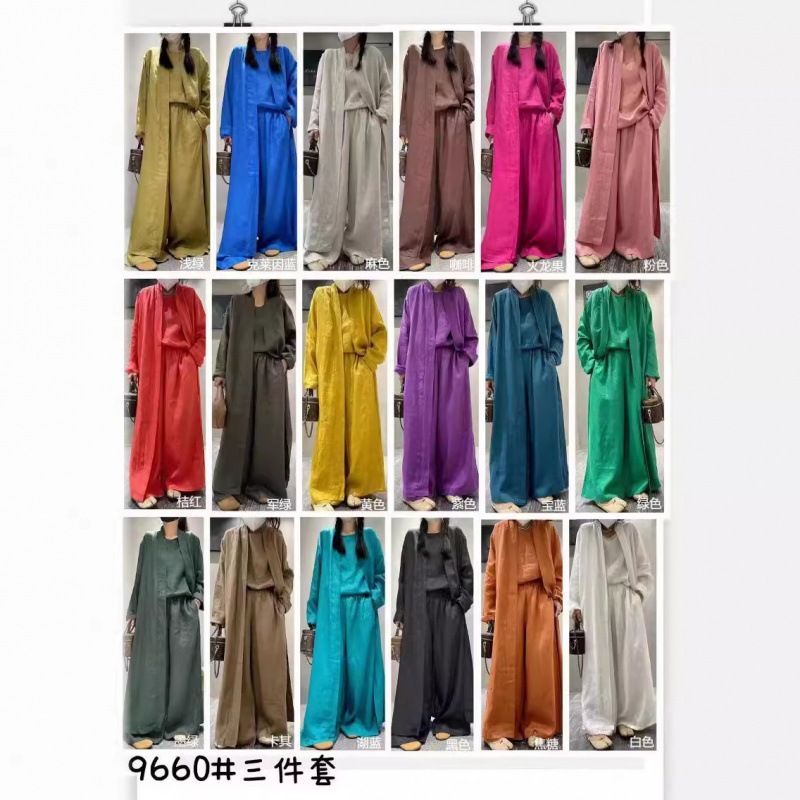 Cz9660亜麻純色ファッション百合気質三点セット2024新型文芸カジュアルシンプルセット女装