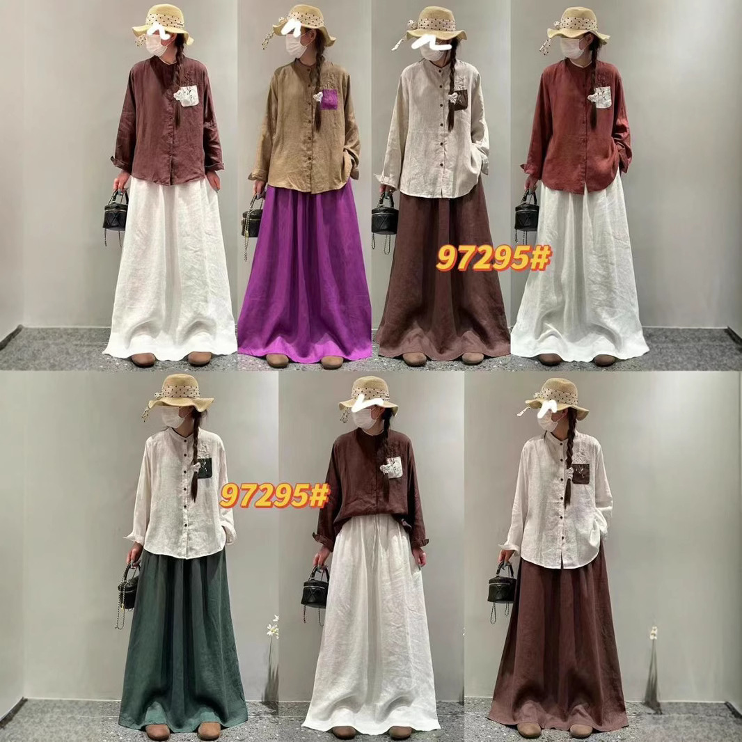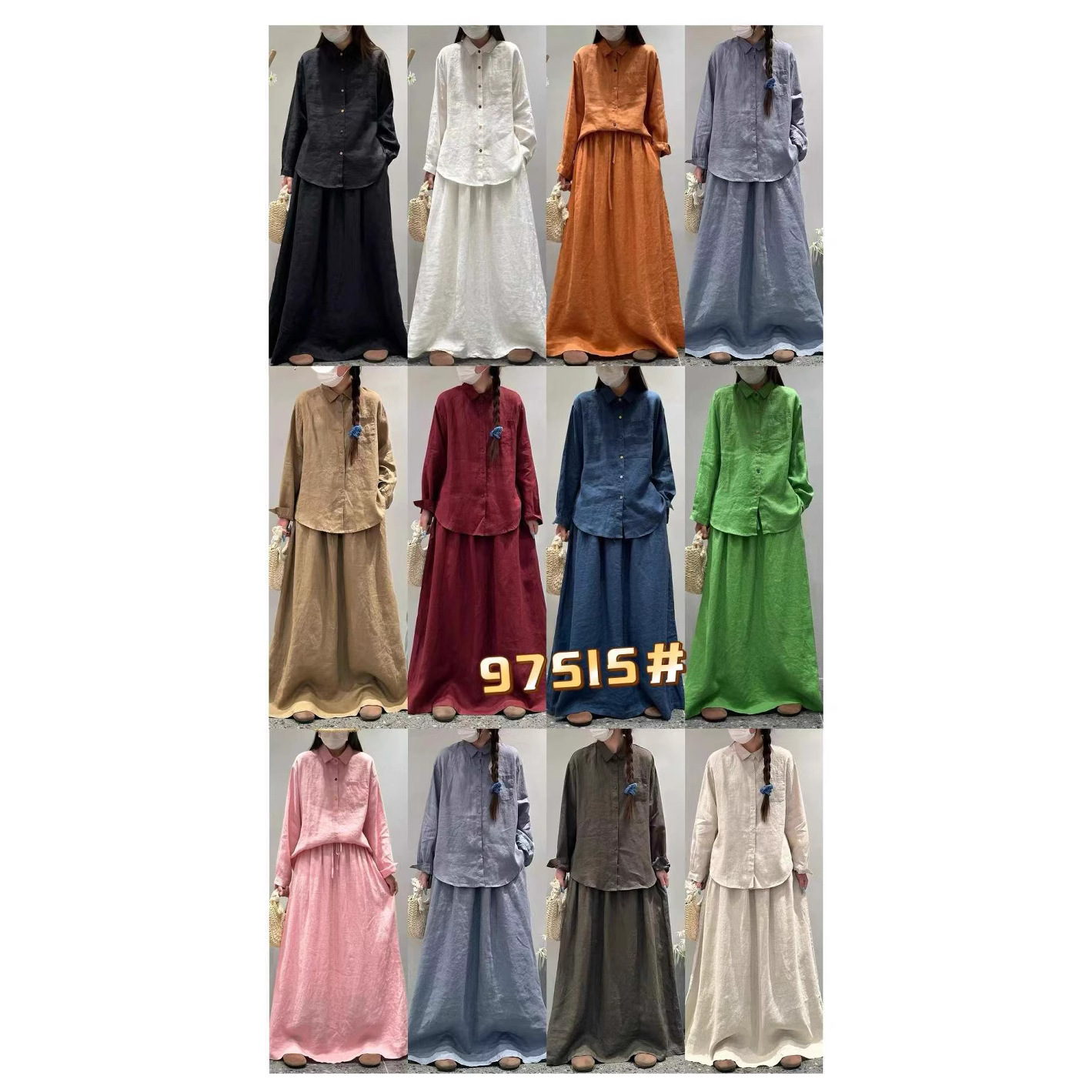 cz97515 文学的で芸術的な気質多用途リネンカジュアルスーツ 2025 夏の新無地シャツ + スカート女性