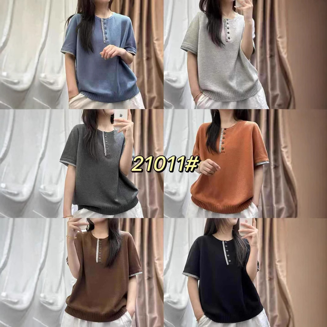 dm21011 ラウンドネック、多用途、肉感カバー、着痩せニットTシャツ、2025年夏新作、女性用ボトムTシャツトップス