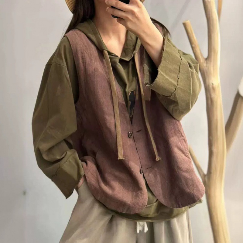Cz2024夏の新しい女性ベスト日系ゆるいカジュアルファッションセットドーパミンは亜麻卸売りを着ている