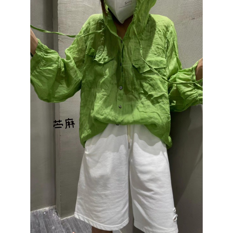 Cz2024夏の新しい女性のシャツのゆったりとしたシャツの亜麻のカジュアルな風のファッションのスーツの長袖の高級感