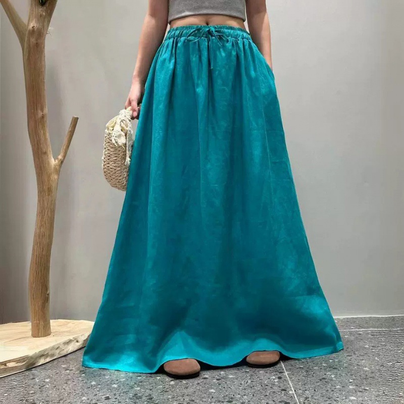 Cz2024夏の新しい女性の下に半身のスカートをつけます。日本のラミー麻のスカートはゆったりしています。
