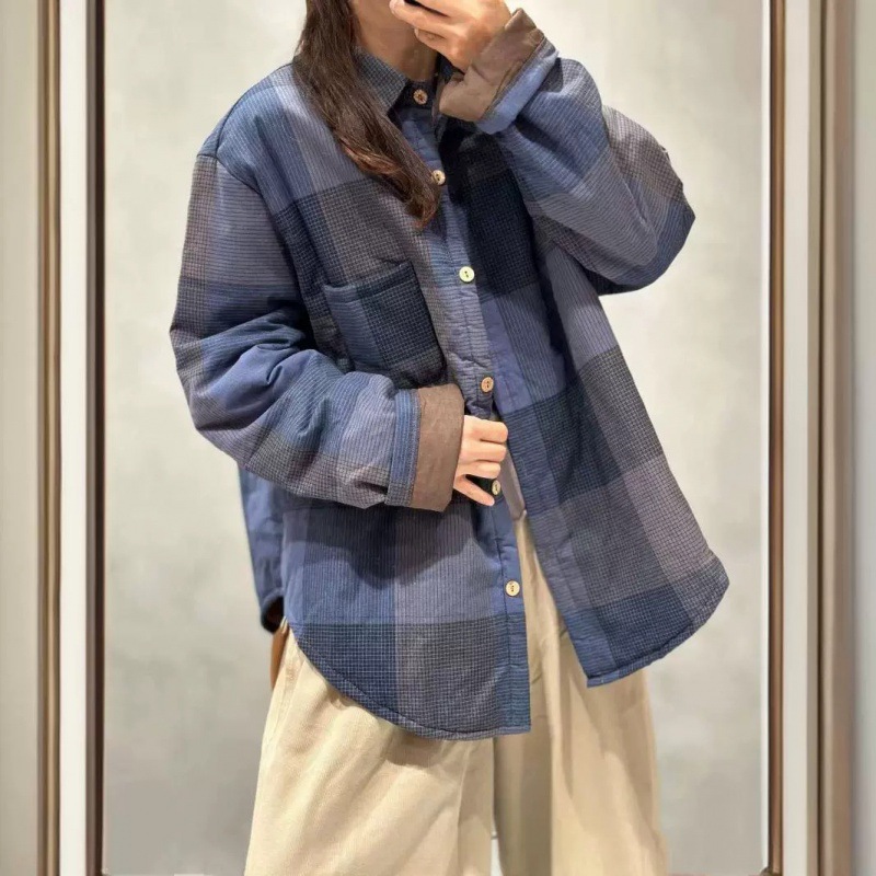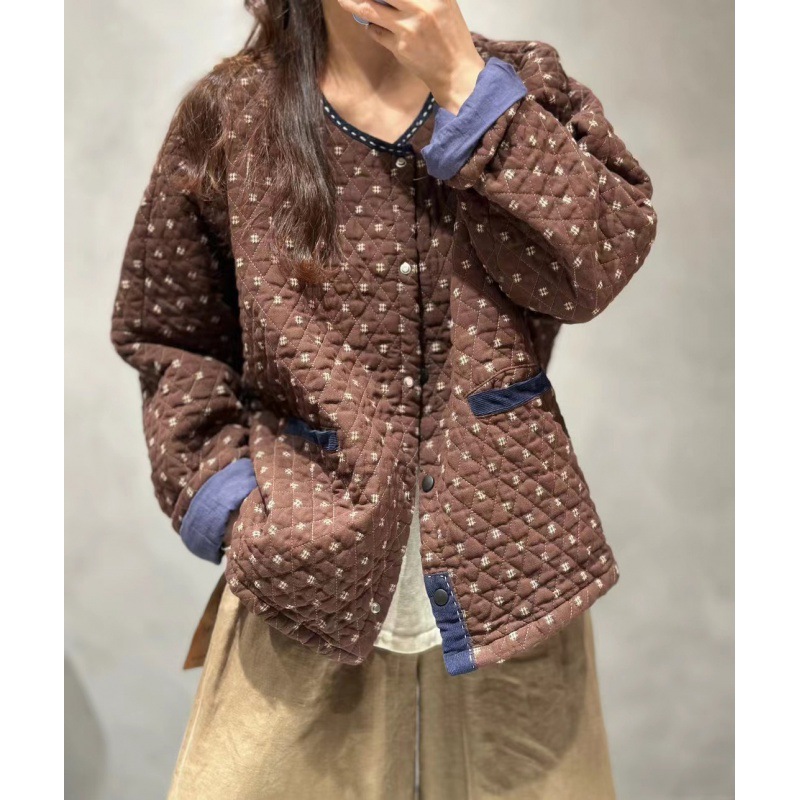 Cz9889-1丸襟菱形格子長袖綿服2024新型ファッションゆるいカジュアルコート保温上着潮