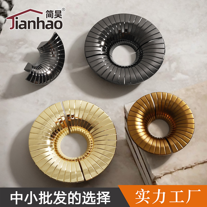 キャビネットのドアの取っ手の新しい中国式の金色の円形は引き出しの食器棚の軽い豪華なタンスのドアの取っ手の金属の部品を詰めます。