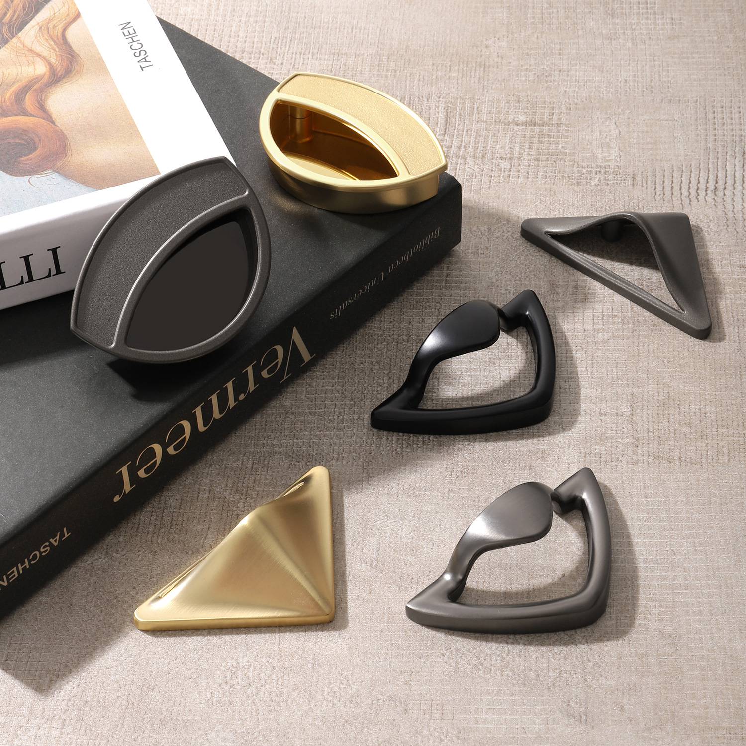 現代のシンプルなワードローブのドアの取っ手の引き出しの食器棚のドアの取っ手の金色の黒色の亜鉛合金の創意的な金属の取っ手