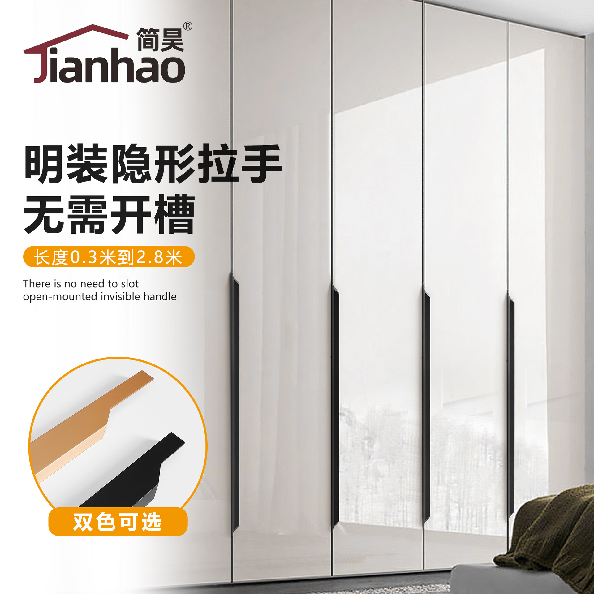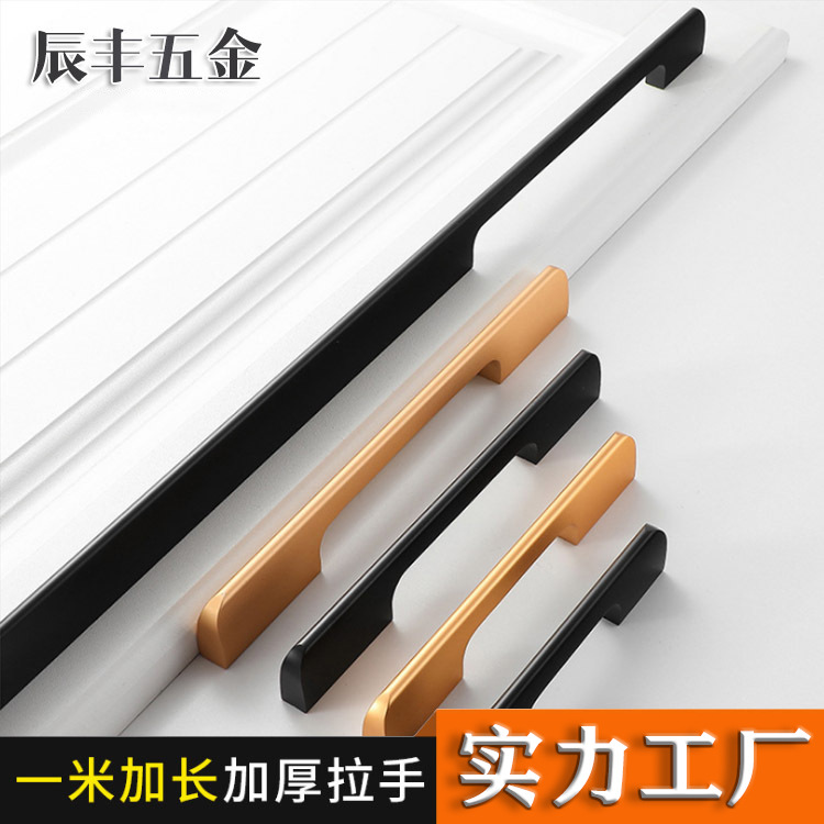 通体延長キャビネットドア取っ手キャビネット引き出し現代シンプルな金色の黒いクローゼットのドアトップからドアノブまで