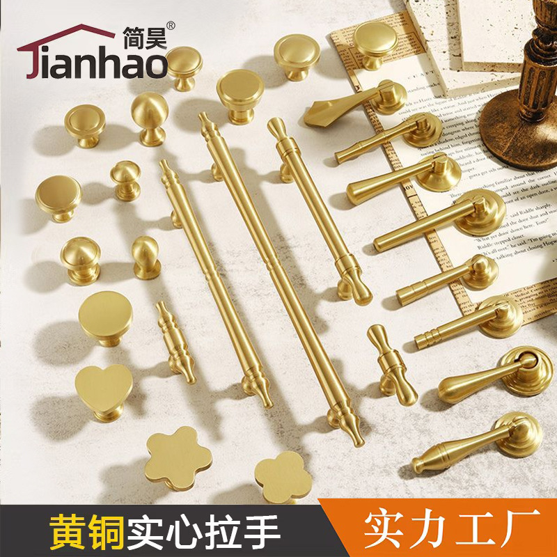 北欧シンプルな中実真鍮取っ手金物引き出しキャビネットドア取っ手単孔新中国式金色取っ手