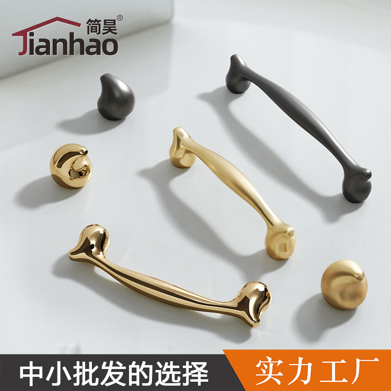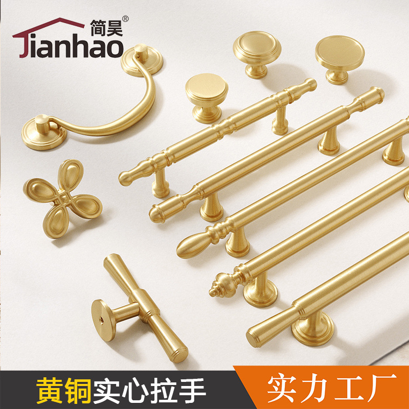北欧シンプルな中実真鍮取っ手金物引き出しキャビネットドア取っ手単孔新中国式金色取っ手