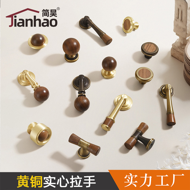新しい中国式の胡桃の木の戸棚の扉の取っ手の北欧の真鍮の木製の戸棚の扉の引き出しの丸いボールの家の中で金の取っ手を備えます。