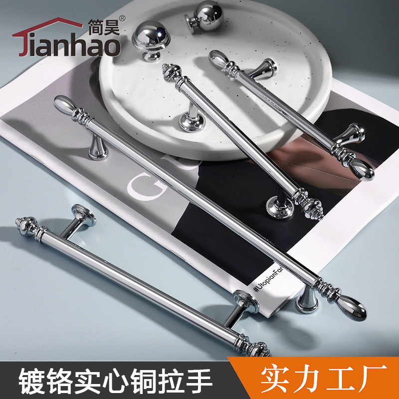 クロムメッキの明るい銀色のフレンチキャビネットのドアの銅の取っ手の丸いキャビネットの取っ手のキャビネットの引き出しの真鍮の中実の取っ手