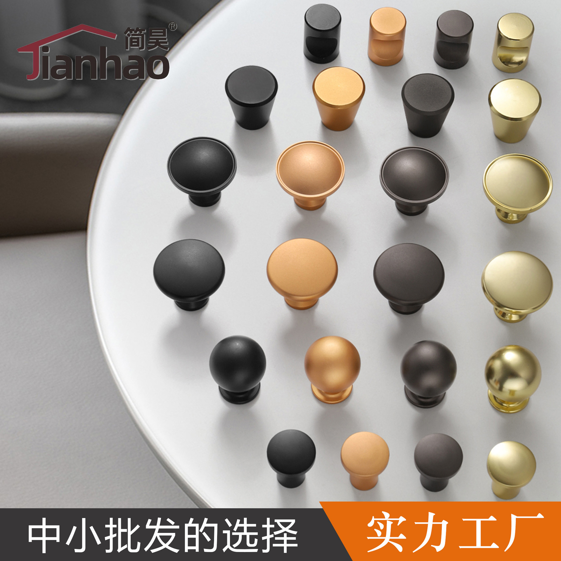 モダンシンプルブラックゴールド北欧ワードローブドアハンドル引き出しアメリカンシングル穴ラウンドアルミ合金スモールハンドル