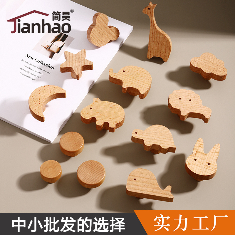 漫画子供部屋動物たんすドア取っ手実木頭取っ手ケヤキ引き出し戸棚ドア取っ手
