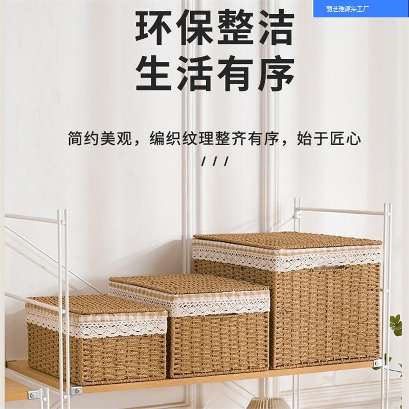 ワードローブ収納ボックス、田舎風非籐わら編み柳編み竹収納ボックス、ワードローブ収納ボックス、蓋付き編みバスケット
