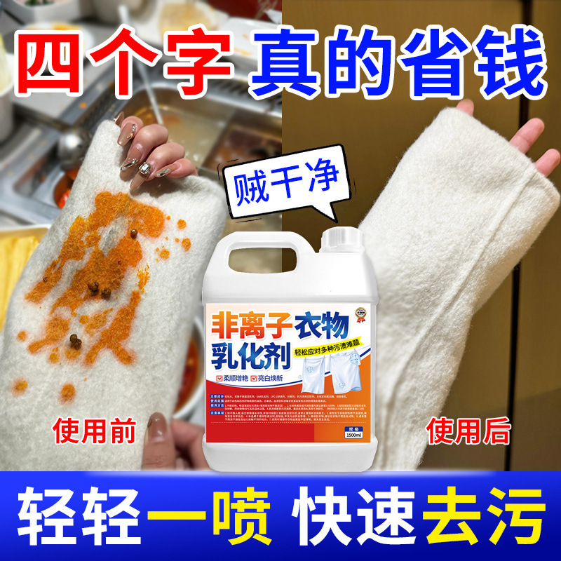 非イオン衣類乳化剤の強力な汚れ除去油汚れが黄色くなってペン汚れを除去し、水洗いしない衣類浸透洗浄剤