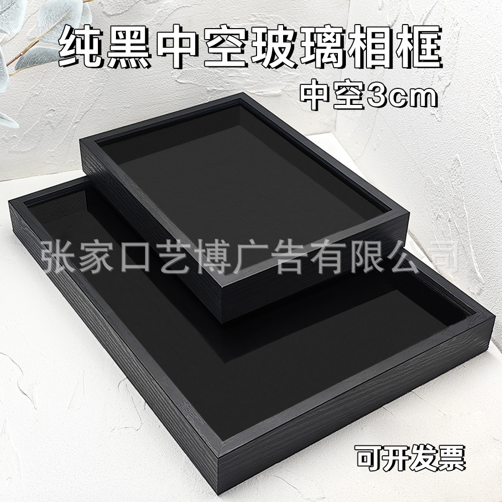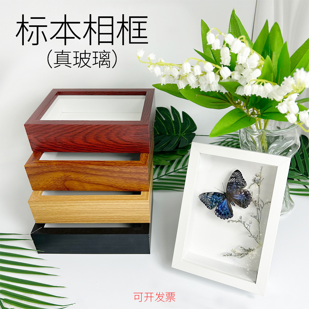 ガラス鏡面中空フォトフレーム昆虫蝶標本植物手作りDIY材料純黒フレーム平面置き台