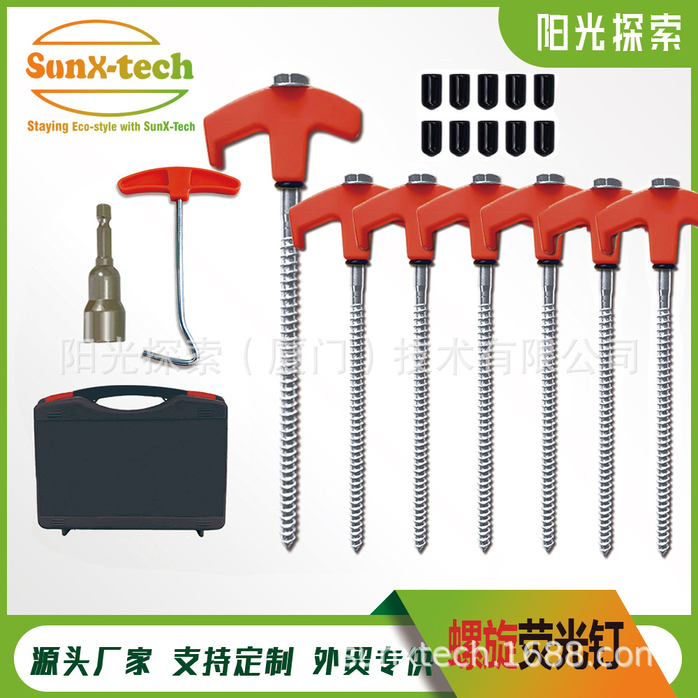 六角スパイラル蛍光釘 炭素鋼釘 M型ネジテント釘 キャンプ用テントアクセサリー メーカー直販 跨境