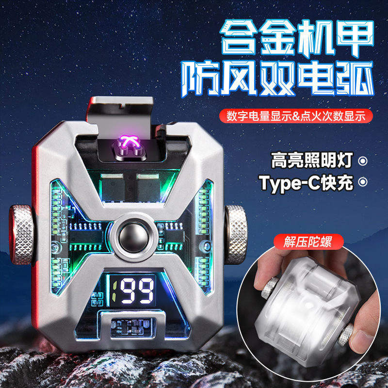 HANNICOOK機甲ジャイロダブルアークLED照明灯電子パルスライター防風アークシガレット