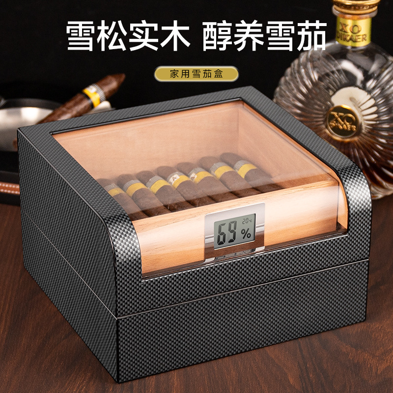 HANNICOOKシガー保湿ボックスポータブル透明窓シダーウッド2層大容量炭素繊維シガーボックス