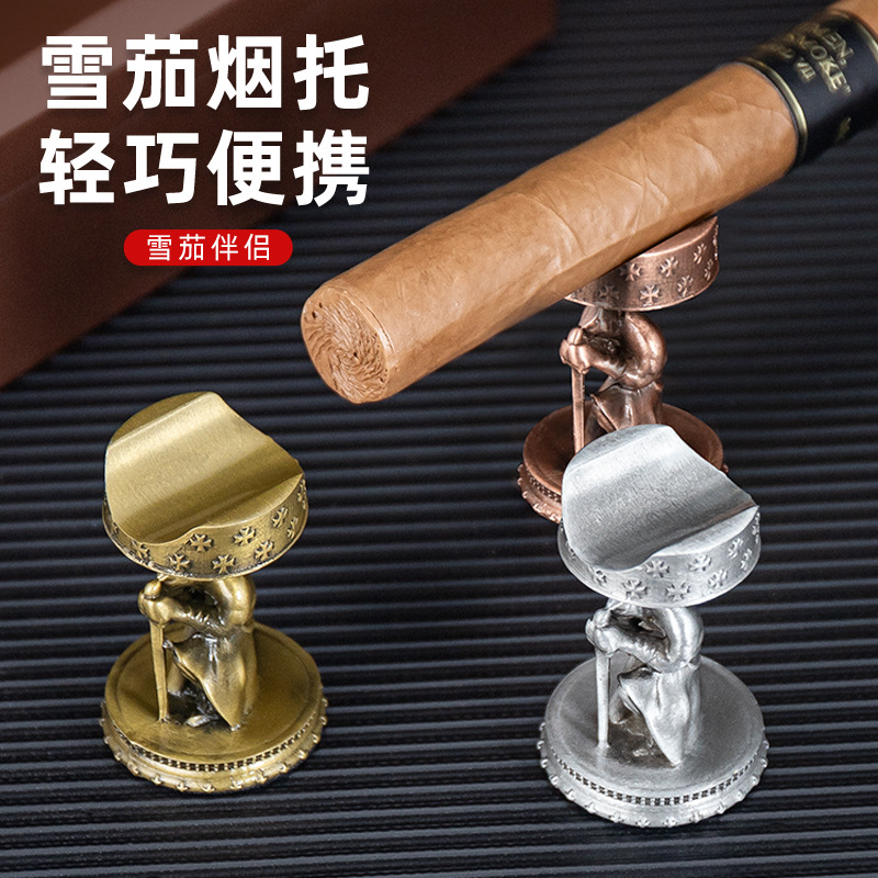 HANNICOOKシガーブラケット金属煙溝携帯屋外滑り止めベースレトロシガーアクセサリータバコホルダー