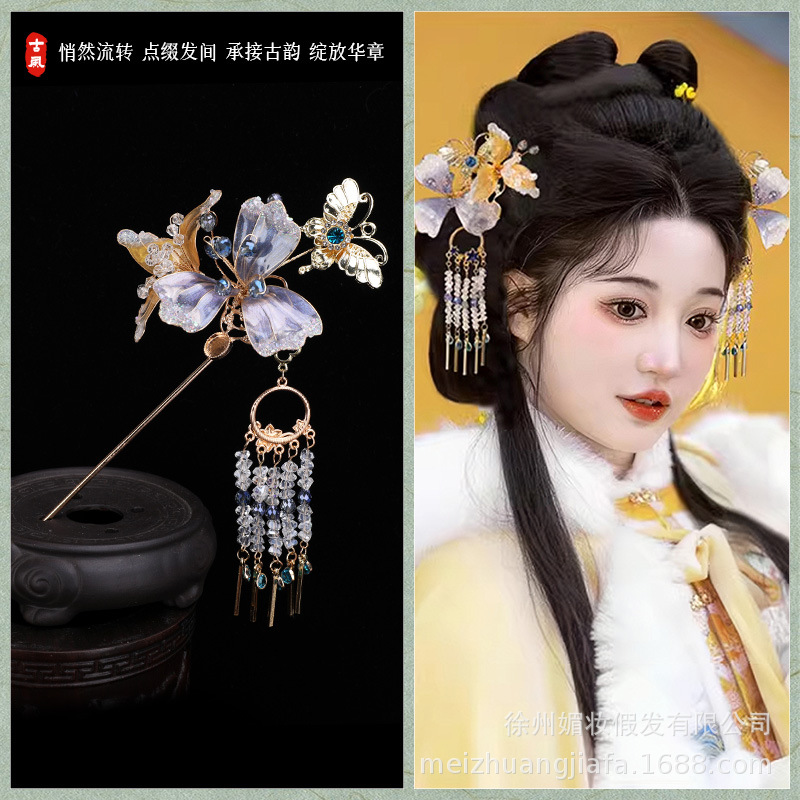 唐風古着漢服頭飾りセット日常造形舞台演出蝶ヘアピン髪櫛仙気イヤリング