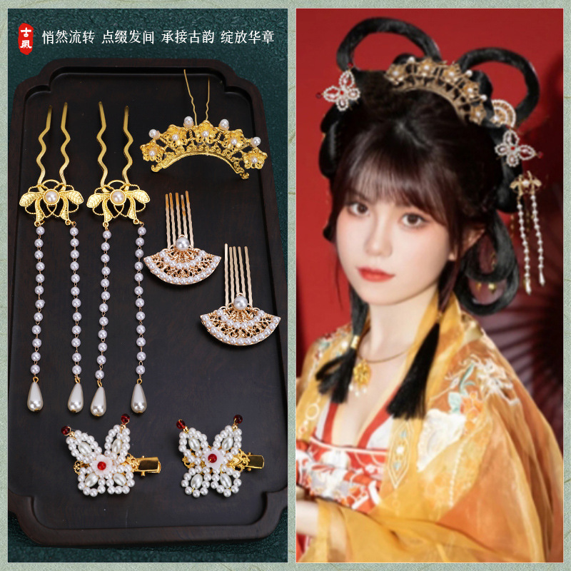 唐風国風復古唐宋明製古風アクセサリー貴妃頭飾り漢服ヘアピン髪冠時代装髪飾りセット