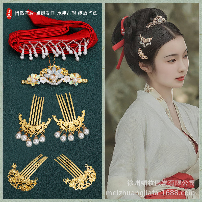 古着漢服頭飾りセット日常造形舞台演出真珠髪櫛流蘇仙気セット唐風