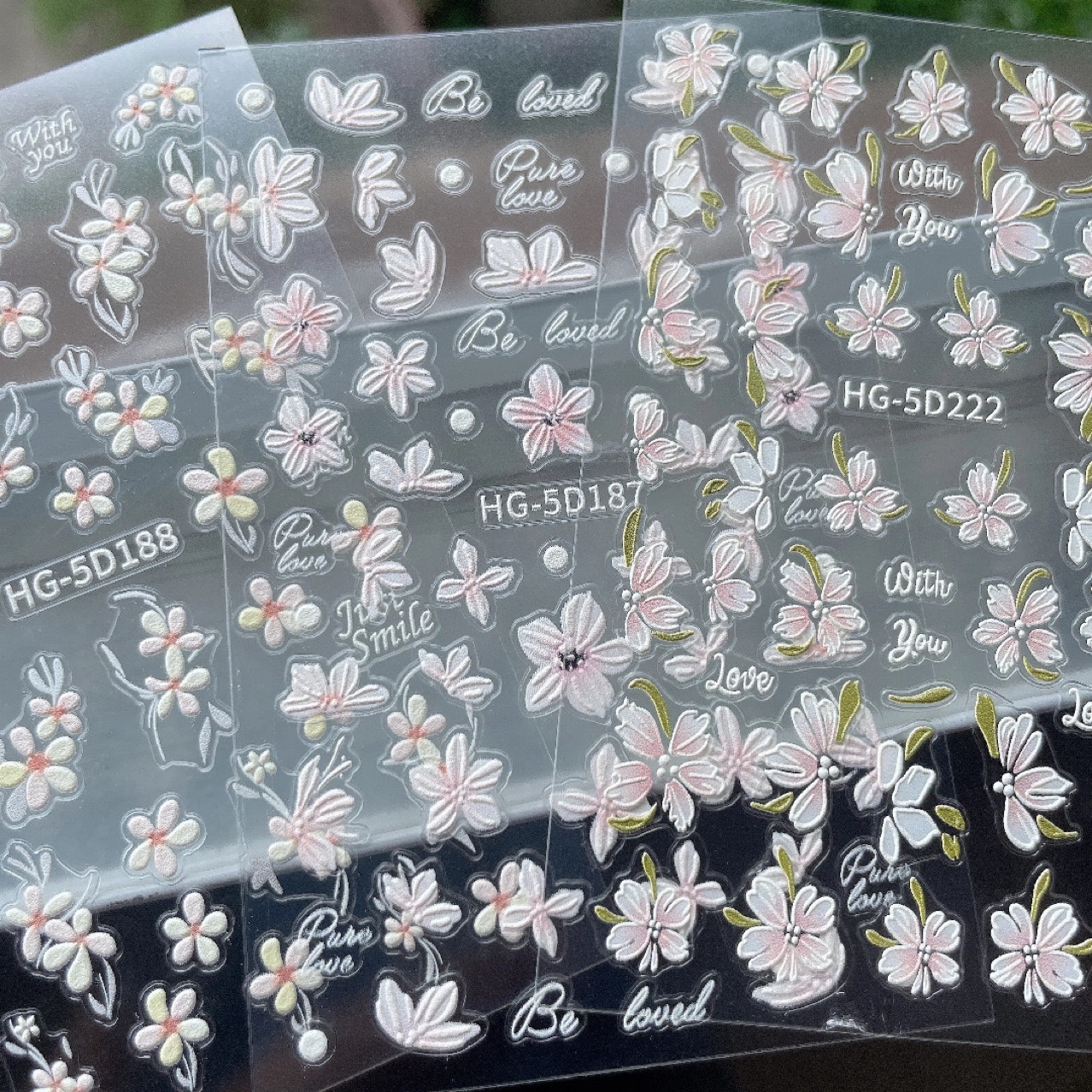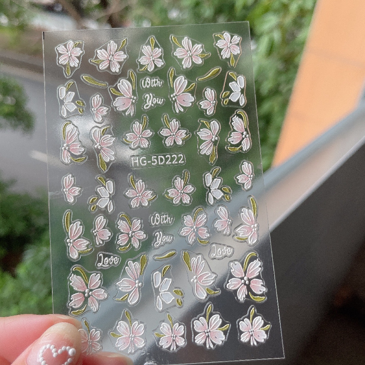 5d浮き彫り山茶花ネイルステッカー赤立体小清新氷花手描き立体花ネイルステッカー