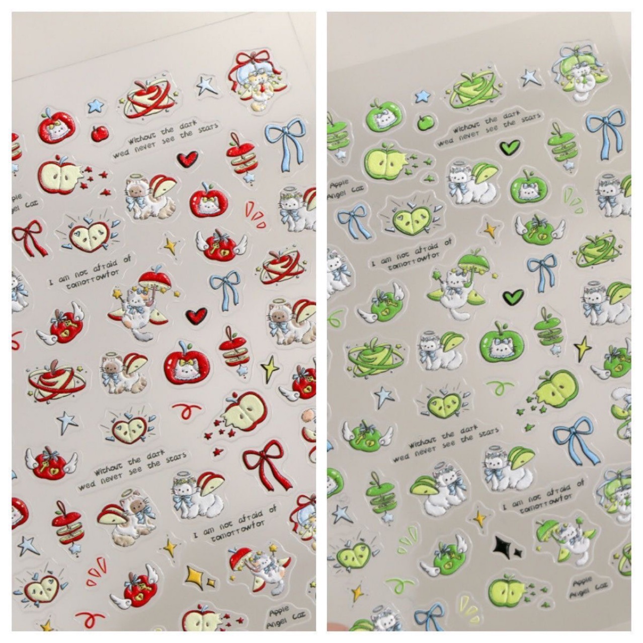 新しいかわいいリンゴ猫レリーフネイルシール5d立体青リンゴ赤リンゴdiyペン棒ccd爪