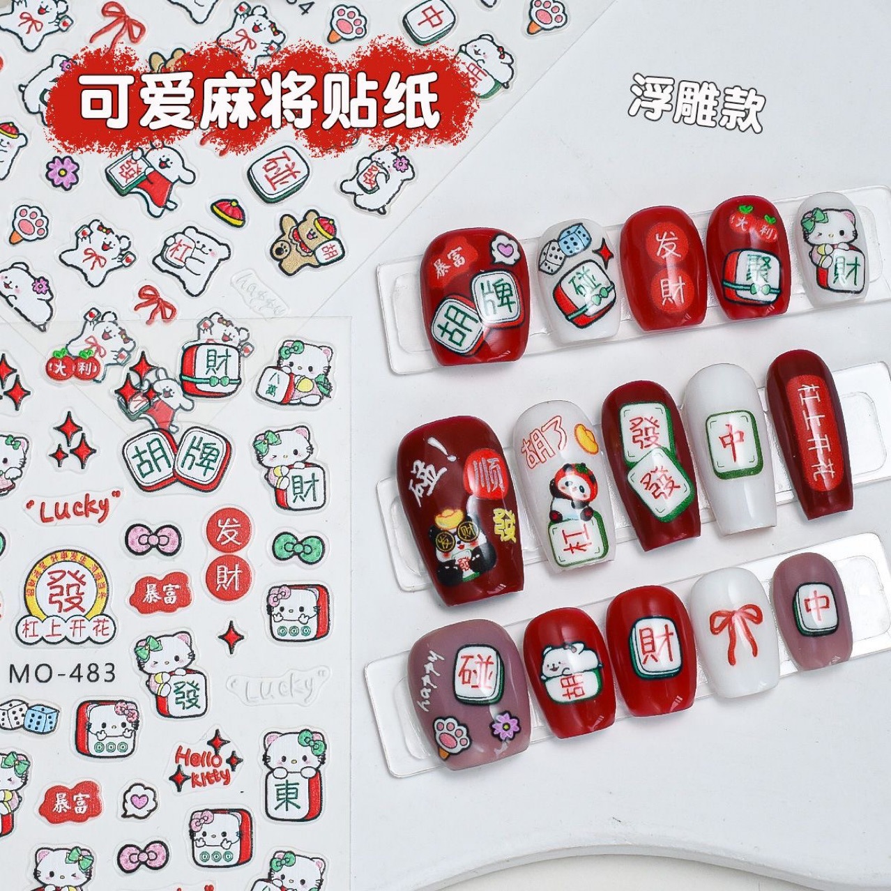 1新型レリーフ新年ネイルシール麻雀要素吉言字帖起爆アニメシール模様