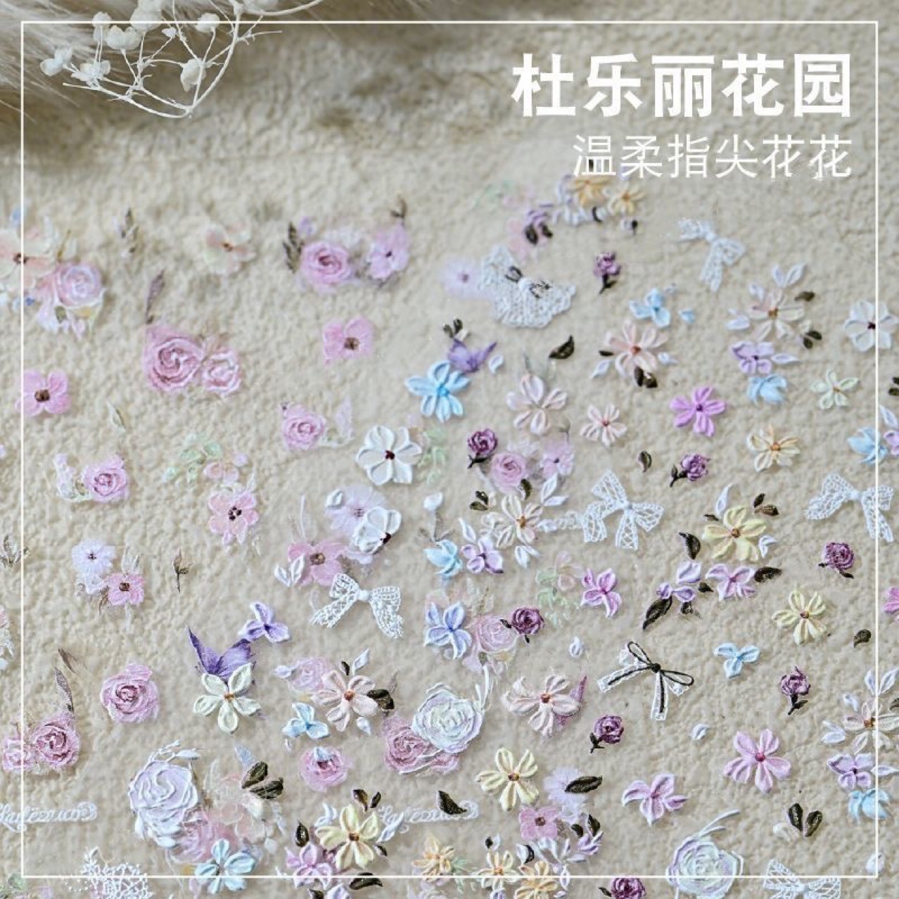 新品春の指先に咲く花杜楽麗花園レリーフネイルステッカー優しい油絵風小花