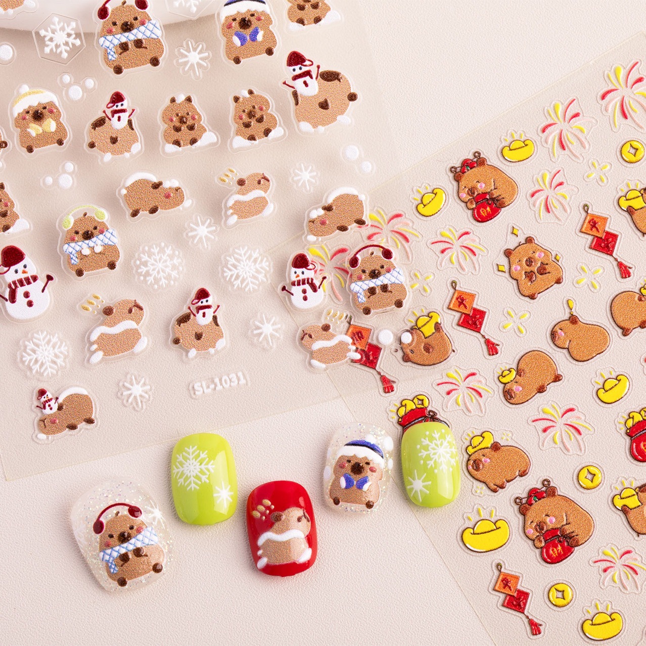 新春カピバラネイルシール福袋花火元宝可爱いカピバラネイルシール饰り