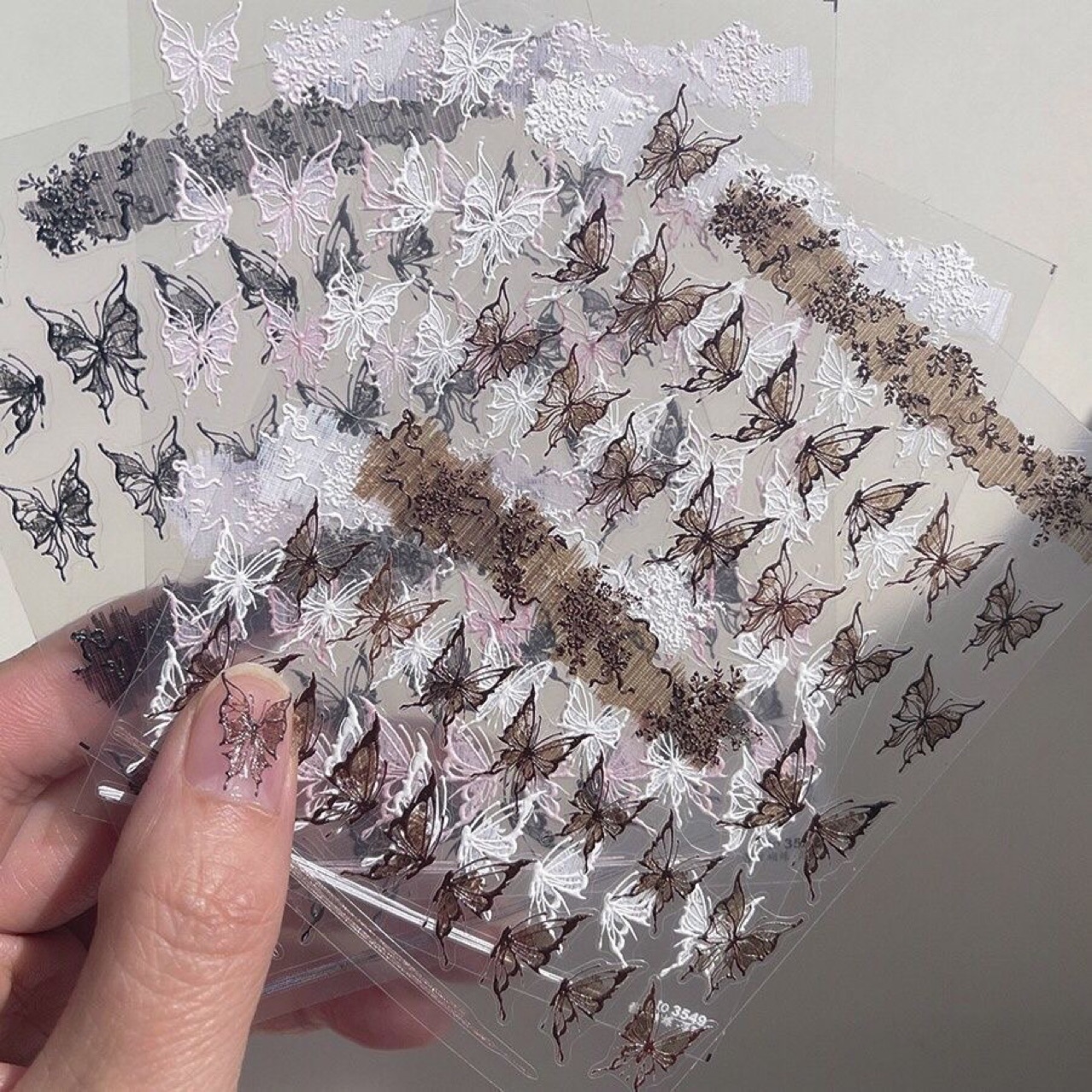 超仙フレンチ少女レース蝶ネイルシール浮雕立体5D美ラードレース蝶ネイルシール