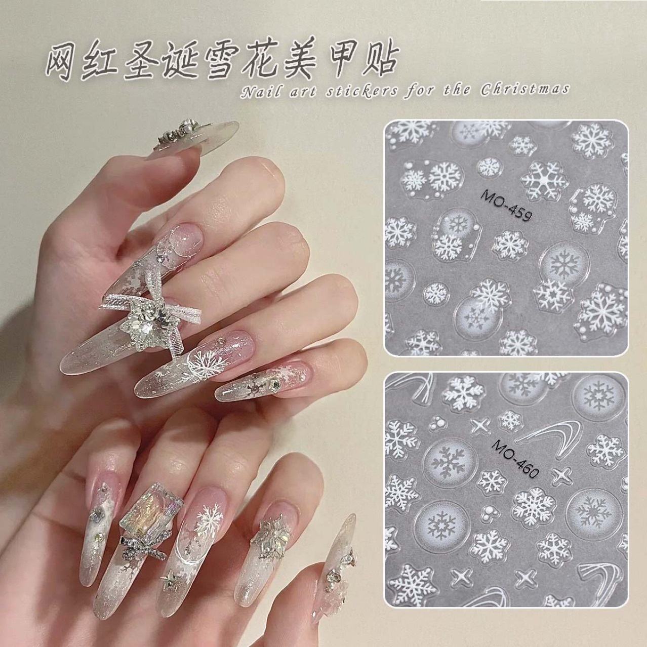 ネットレッドクリスマス雪花ネイルシールクリスマスシリーズの多くのスタイルが透かし彫り雪花星芒法式爪飾り