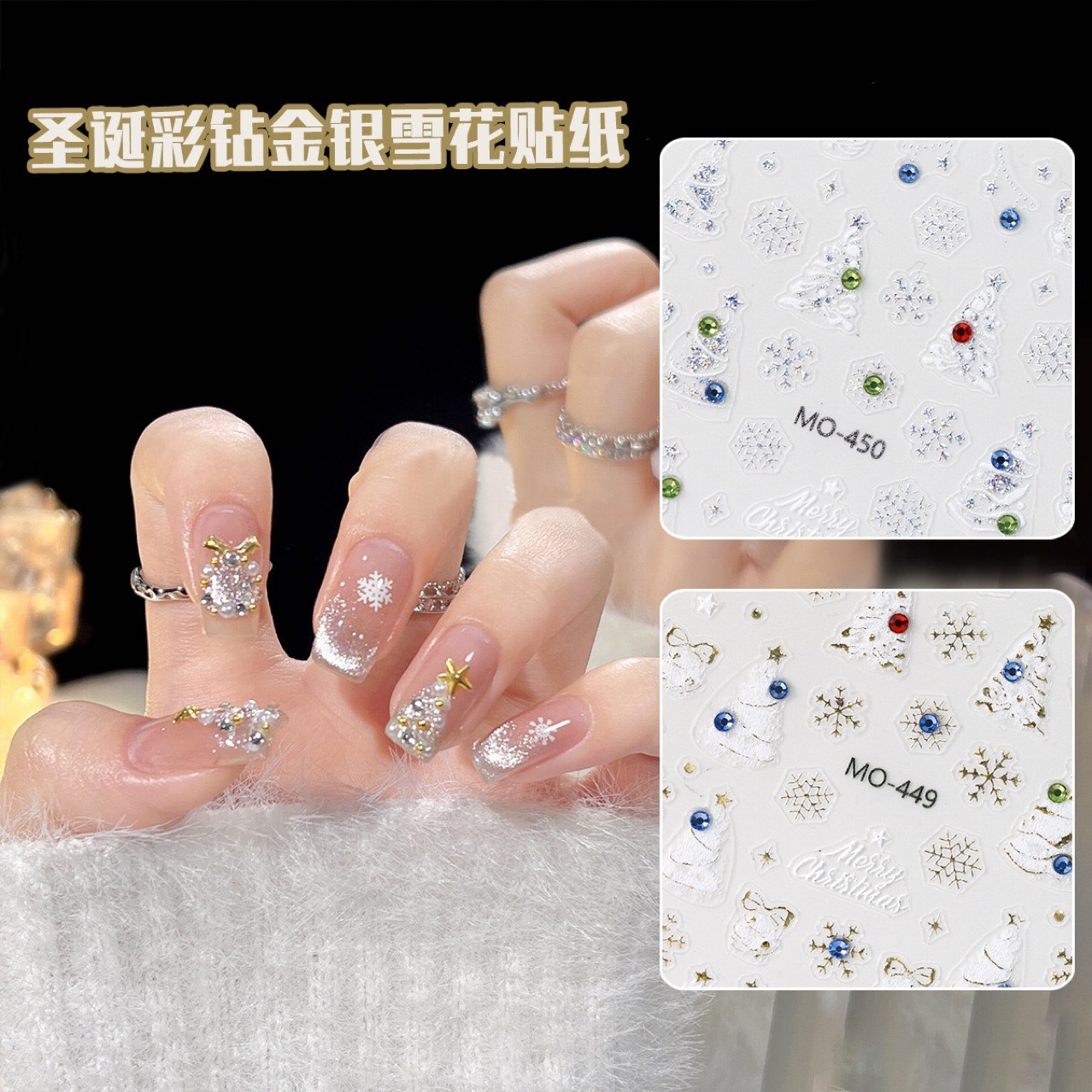 国境を越えて人気ins雪花ネイルシールレーザー銀白色金色雪花クリスマス爪シールアクセサリー