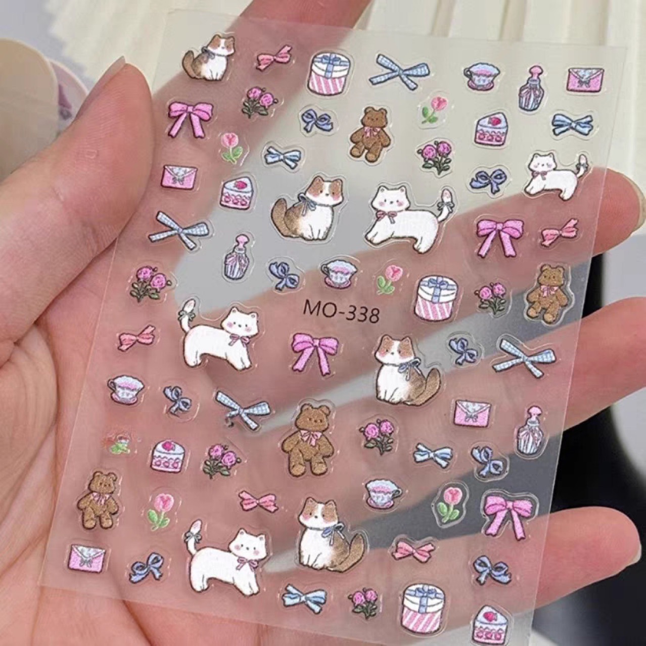 新品蝶結び猫ネイルステッカー柴犬萌え犬花乙女心インスタ风diyデコレーション3dステッカー