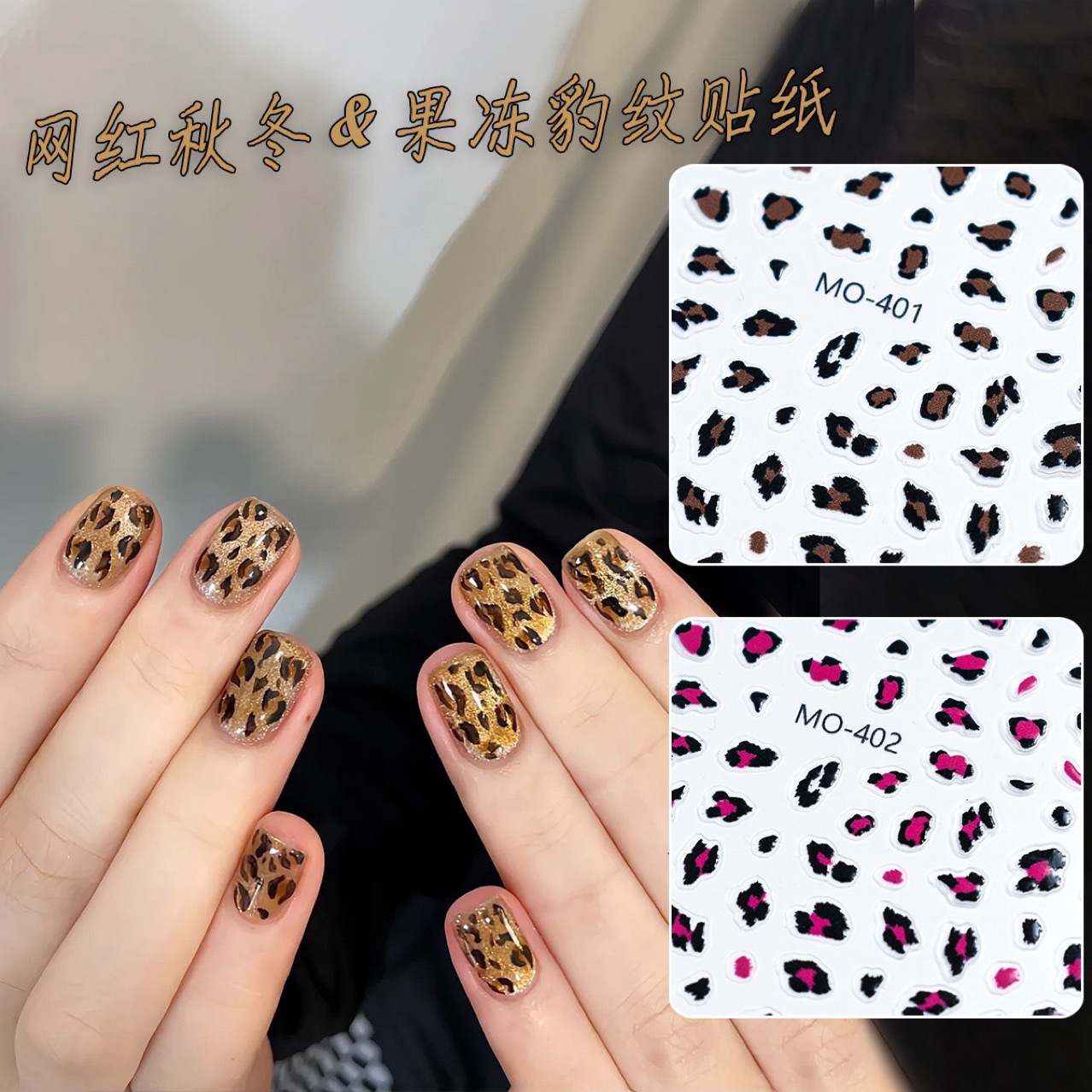 新しいヒョウ柄の爪は紙のネットを貼ります。
