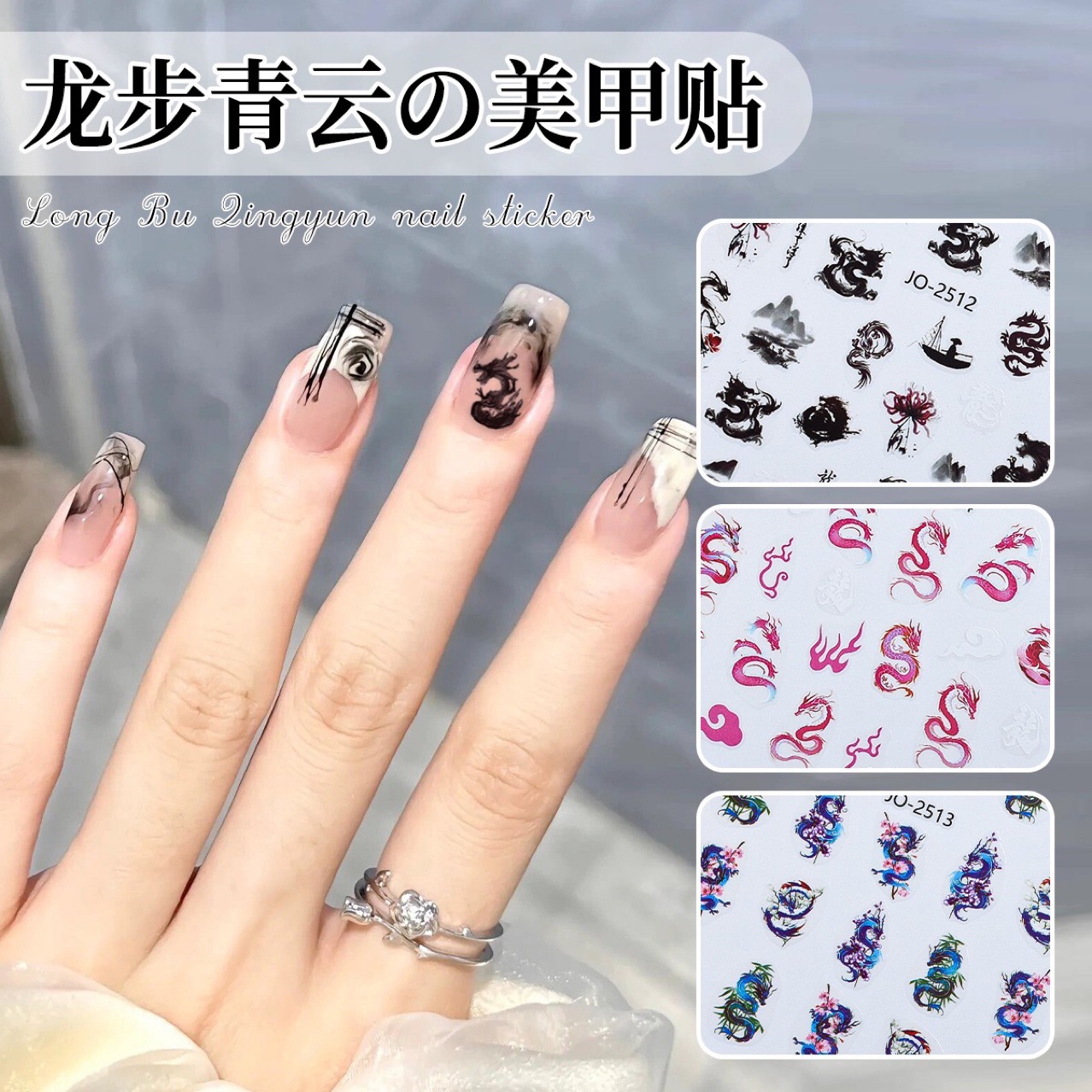龍年ネイル2024年新年国風国潮書道シール龍歩青雲祥雲幻彩吉祥爪貼り