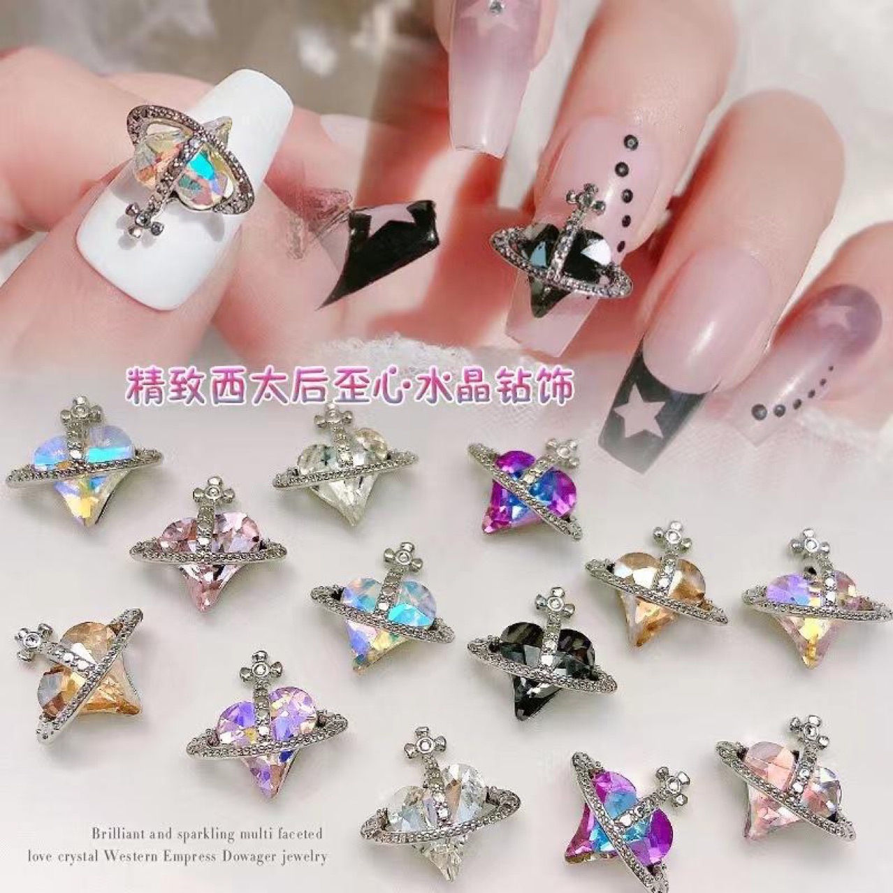 ネットの赤い西の太后のネイルの合金のアクセサリの歪んだ桃の心はダイヤモンドのレトロな暗い風の銀色の爪のドリルを入れます。