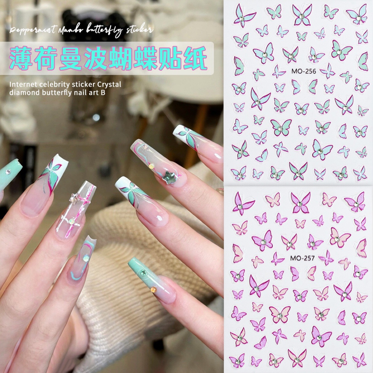 MOSR爆種オズの魔法使い蝶ネイルシールINS風紫薔薇蝶粉玉蝶ネイルシール