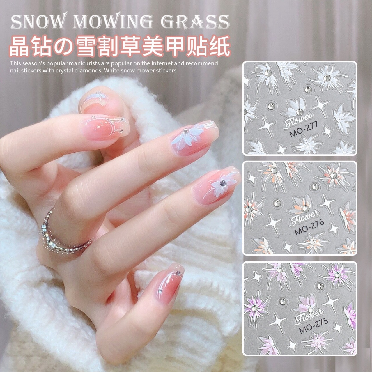 ネイルシールの結晶ドリルの白い雪の草刈りのまぶしさ